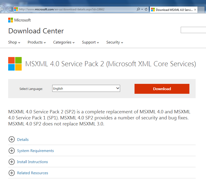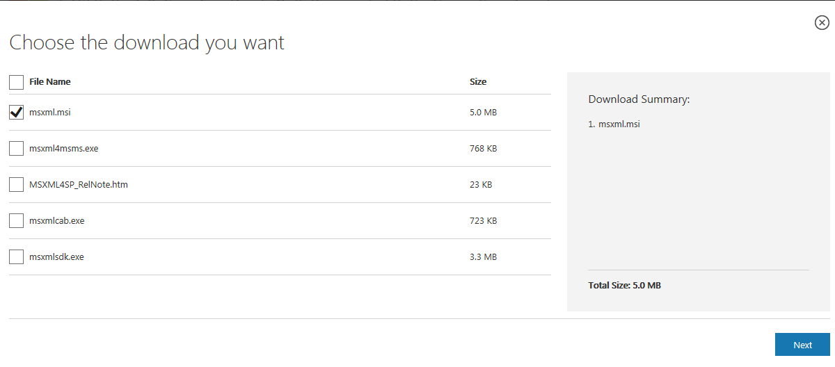 8. Из данного списка необходимо скачать файл msxml.msi.