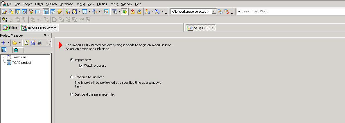 2. Открыть установленную программу Toad for Oracle 11_2.7.