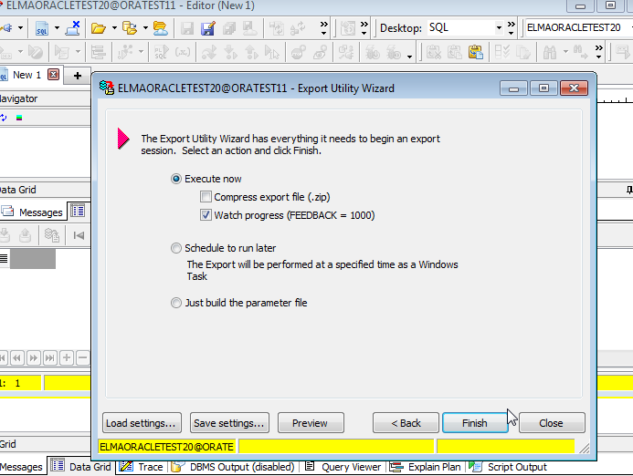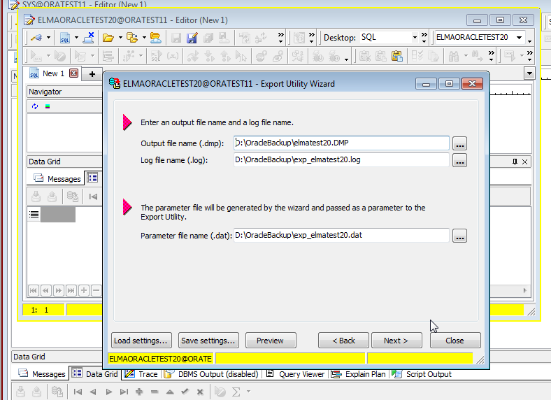 - ELMAORACLE10TEST23 – схема (userid) забекапится только эта схема, если нужен бекап ВСЕХ схем, то вместо SCHEMAS=ELMAORACLE10TEST23 записать FULL=Y.