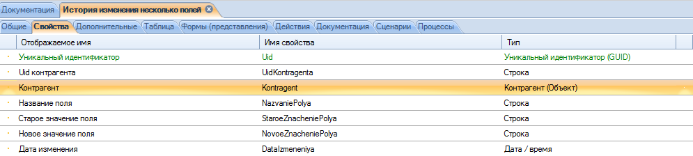 В данном примере мы отслеживаем изменение трех полей (название, юр.адрес, ИНН), и если значение поля изменилось, то записываем информацию (uid контрагента, название поля, старое значение поля, новое значение поля, дату изменения) в другую таблицу. В дальнейшем можно навесить на этот объект форму и отслеживать изменение выбранных полей.