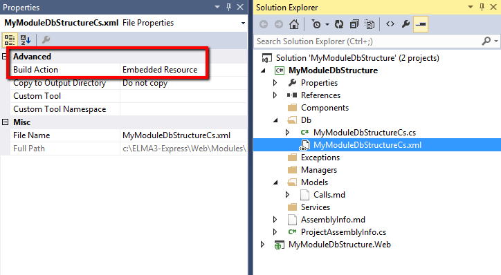 Рис. 1. Расположение файлов MyModuleDbStructureCs.cs и MyModuleDbStructureCs.xml