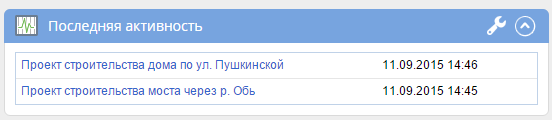 Рис. 2. Данные по проектам в портлете «Последняя активность»