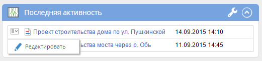 Рис. 3. Данные по проектам в портлете «Последняя активность» с пользовательской разметкой и контекстным меню