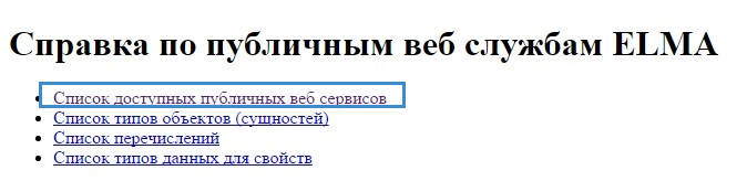 В системе имеется возможность создавать свой собственный веб сервис. Список уже существующих веб сервисов можно увидеть, прописав в строке запроса ~/API/Help и выбрав «Список доступных публичных веб сервисов», либо прописав в строке запроса ~/API/Help/Services.