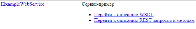 Ссылка на данный веб сервис сформируется в виде ~/PublicAPI/PublicServiceExample/ExampleWeb. Можно найти данную ссылку, кликнув на «Перейти к описанию WSDL».
