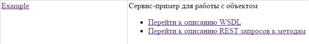 Ссылка на данный веб сервис сформируется в виде ~/API/Example. Можно найти данную ссылку, кликнув на «Перейти к описанию WSDL».
