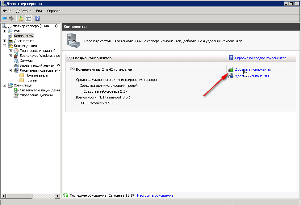 2. В контекстном меню узла Компоненты выбираем пункт Добавить компоненты. Запустится мастер добавления компонентов.