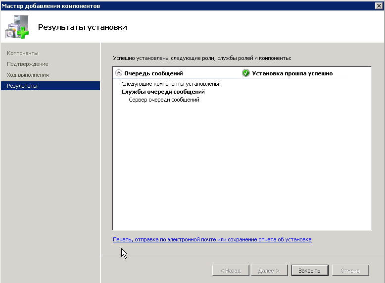 6. Результат установки «Установка прошла успешно», нажимаем на кнопку Закрыть.