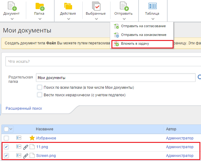 Раздел Docflow: