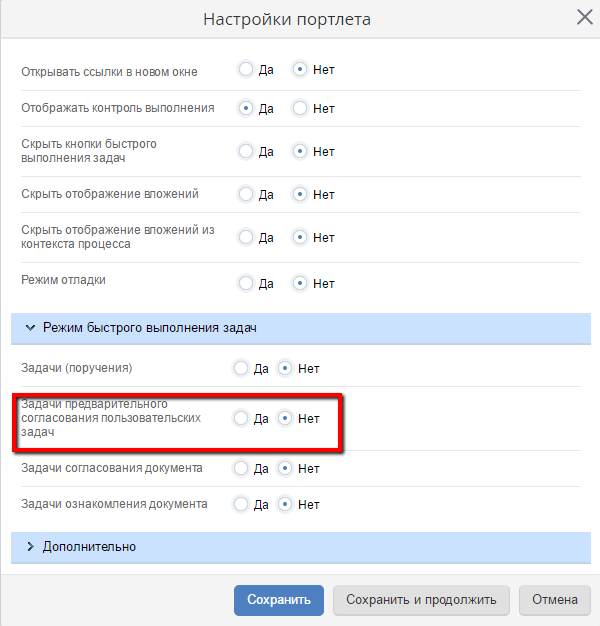 При настройке портлетных страниц у пользователей, имеющих права на редактирование, появилась возможность переключиться на редактирование общих настроек.