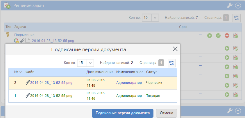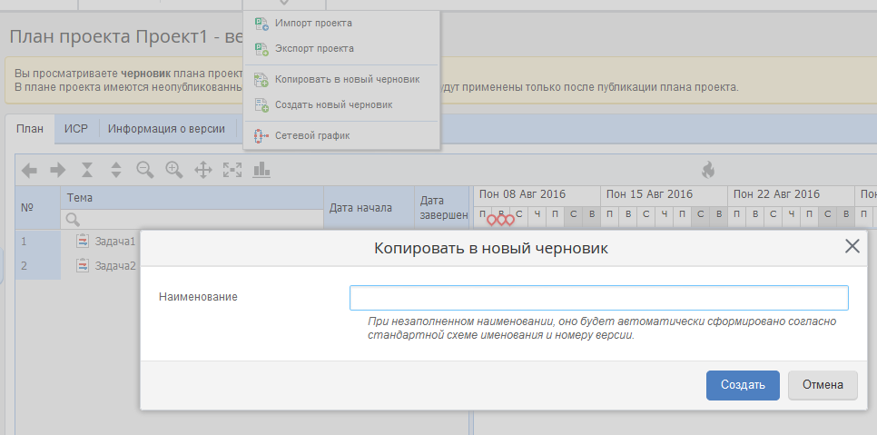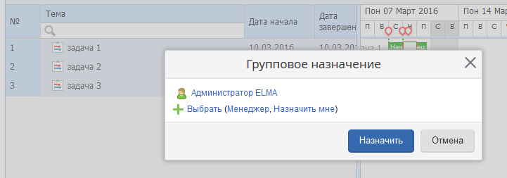 Выбор пользователей (исполнитель/соисполнитель/контролер) для проектных задач при публикации плана проекта. В случае если в задаче плана установлена проектная роль с количеством участников более 1, система предлагала при каждой публикации плана выбрать конкретного пользователя/пользователей из списка доступных. Теперь выбор пользователей не осуществляется для закрытых задач и для задач, в которых уже выбран пользователь в ходе одной из прошлых публикаций плана.