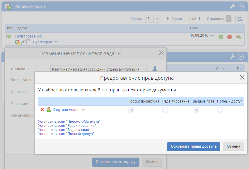 Переназначение задач по бизнес-процессам