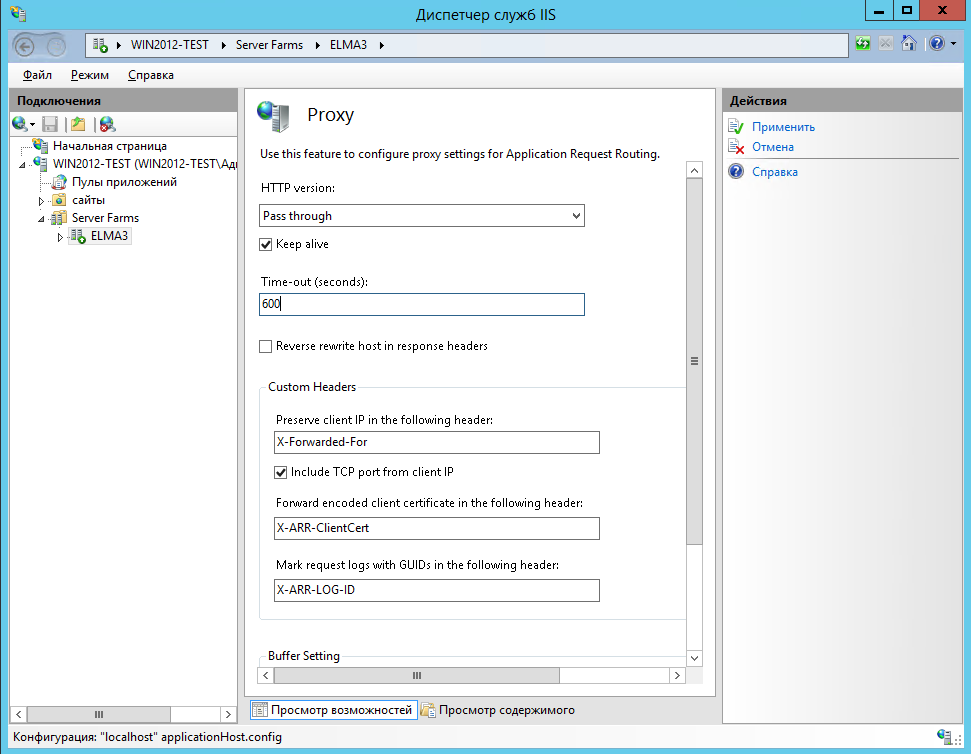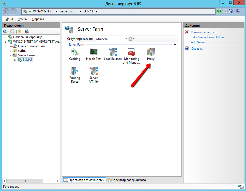 - Решение: Зайдите в настройки веб-фермы на контроллере, далее в Диспетчер служб IIS – Proxy.
