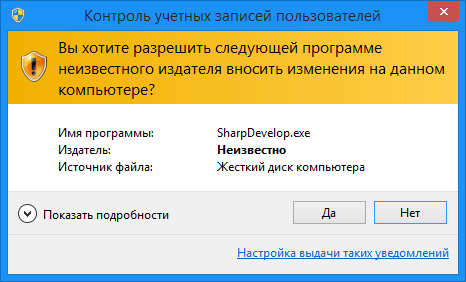 В некоторых операционных системах при этом может быть отображено диалоговое окно с предупреждением системы безопасности (рис. 3). Для запуска SharpDevelop необходимо нажать на кнопку Да.