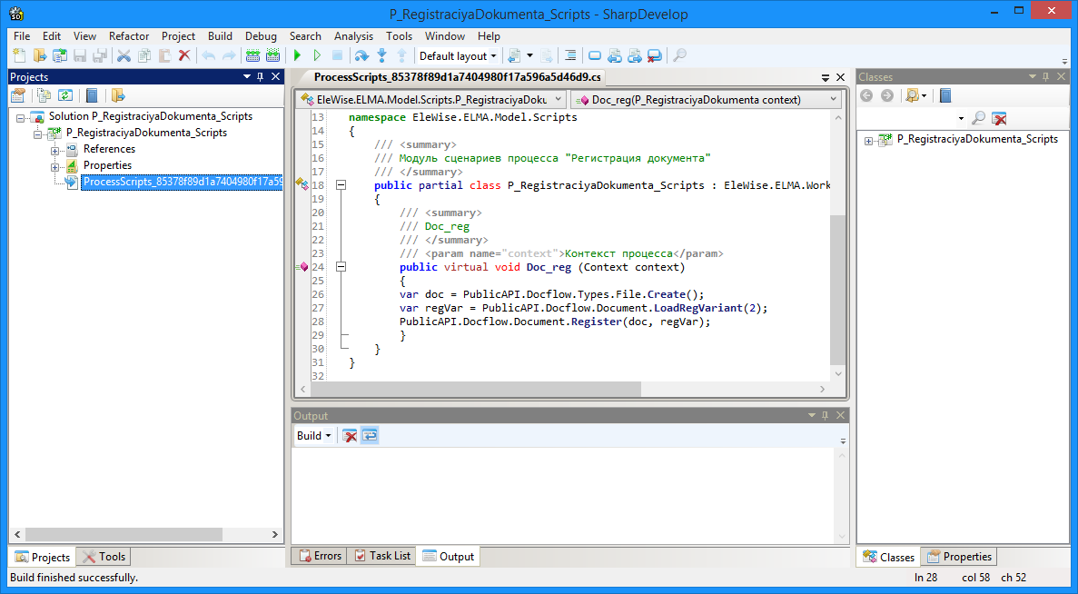 Рассмотрим подробнее работу с кодом в среде SharpDevelop – для более сложных сценариев, где уже не всегда достаточно функций PublicAPI.