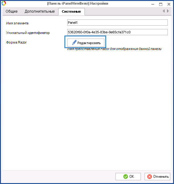Рис. 3. Окно настройки панели. Вкладка "Системные". Кнопка "Редактировать"