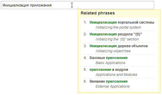 Рис. 11. Всплывающее окно со списком похожих фраз