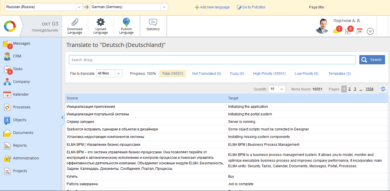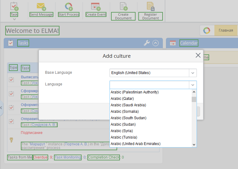 После завершения публикации система ELMA может быть переведена на данный язык и все пользователи системы ELMA смогут использовать его.