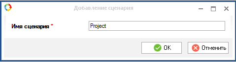 После нажатия на кнопку Указать сценарий появится окно добавления сценария, с обязательным для заполнения полем Имя сценария* (рис.5).