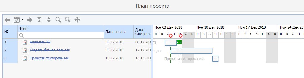 Рис.9. Веб-приложение ELMA. Окно просмотра плана проекта