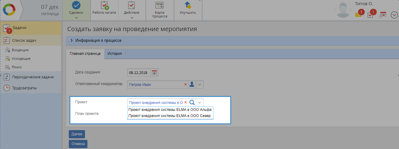 Рис.8. Веб-приложение ELMA. Форма процессной задачи