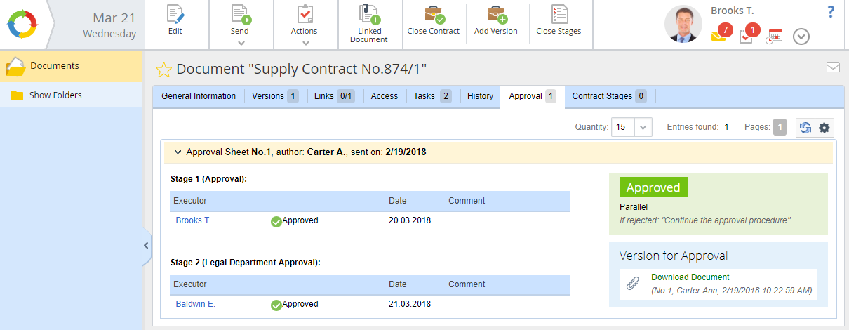 You can also find the information on all the approval stages on the Approval tab of the document page.
