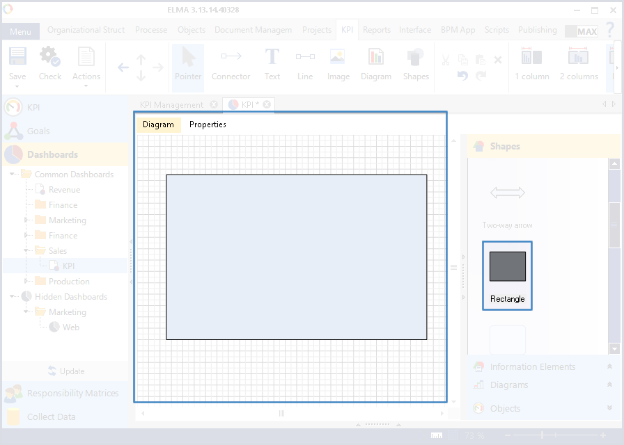 Fig. 3. Creating a KPI display template. A rectangle added to the dashboard diagram