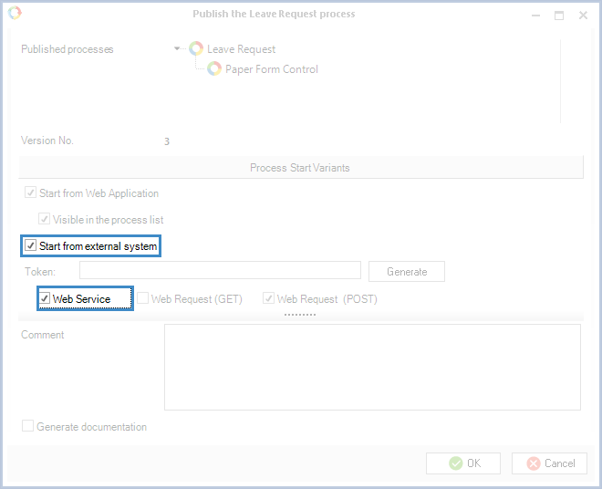 The SOA Connector is an integral part of ELMA system and does not require any adjustments. Using SOAP methods to address business processes and their instances is possible only if the processes are published with correct tokens and have the From external and Web Service options enabled in the Process Start Variants section (Fig. 2).