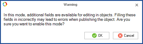 The advanced mode - in this mode all the advanced settings of the objects, document types, record cards and project types become visible and available for editing. Advanced settings will be also available on the form for creating a new project type, document type and record card. It is recommended that only developers and experts use this mode. Accidental change of provided fields may lead to publishing errors.