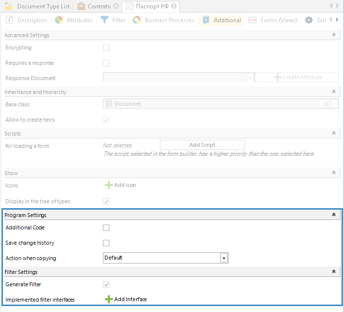 On an object page, the Additional Tab features the following additional settings: Program Settings and Filter Settings (fig. 3).